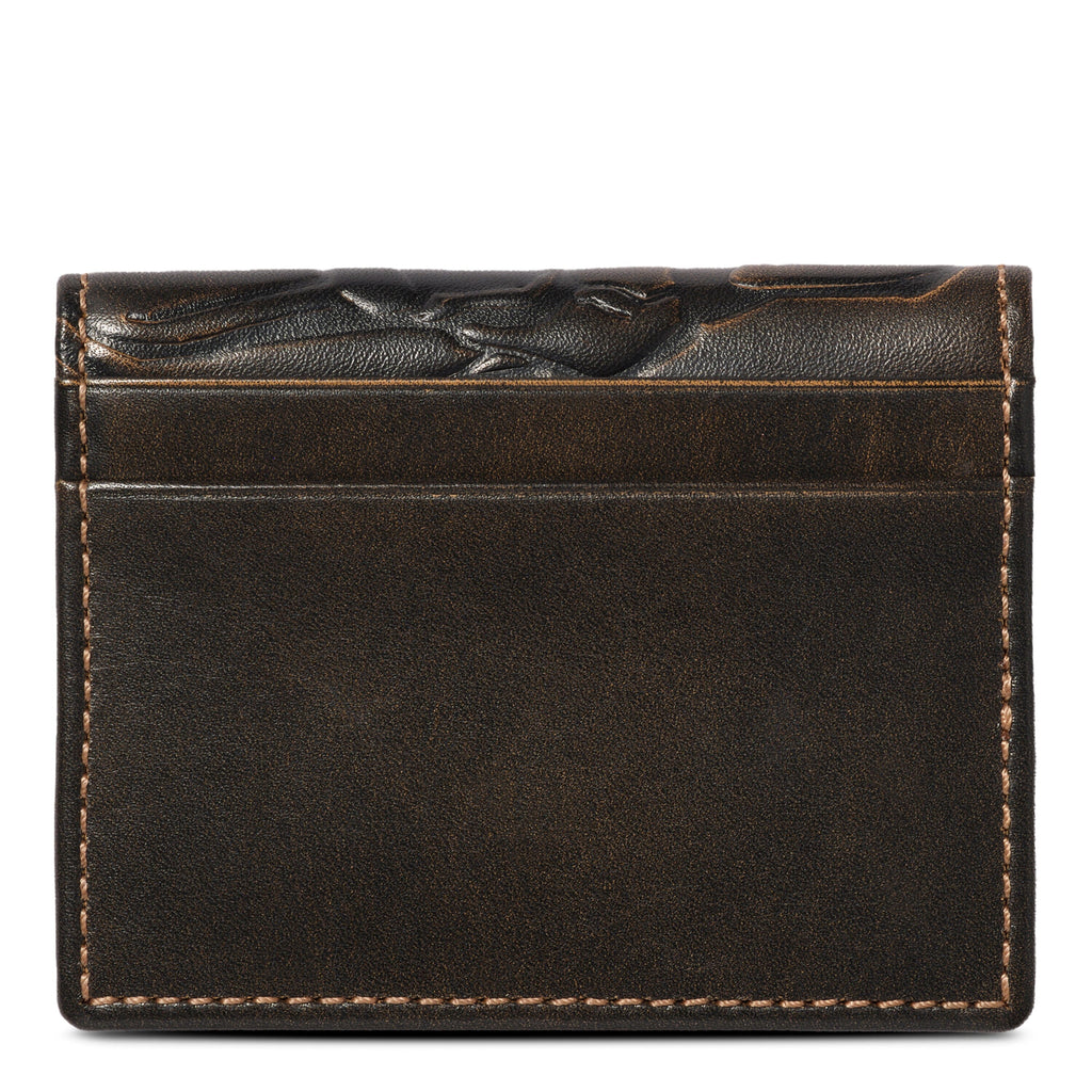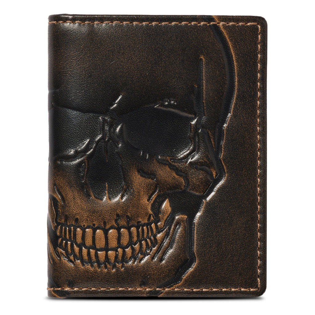Minimalistic Design ... Jack's Skull Slim Card Wallet is uniquely designed to carry comfortably in both the front or back pocket. This small Card Case offers classic functionality as well as a multi-card interior layout with designated exterior card slides for your most frequented cards. Friends tell us the layout "just works!"