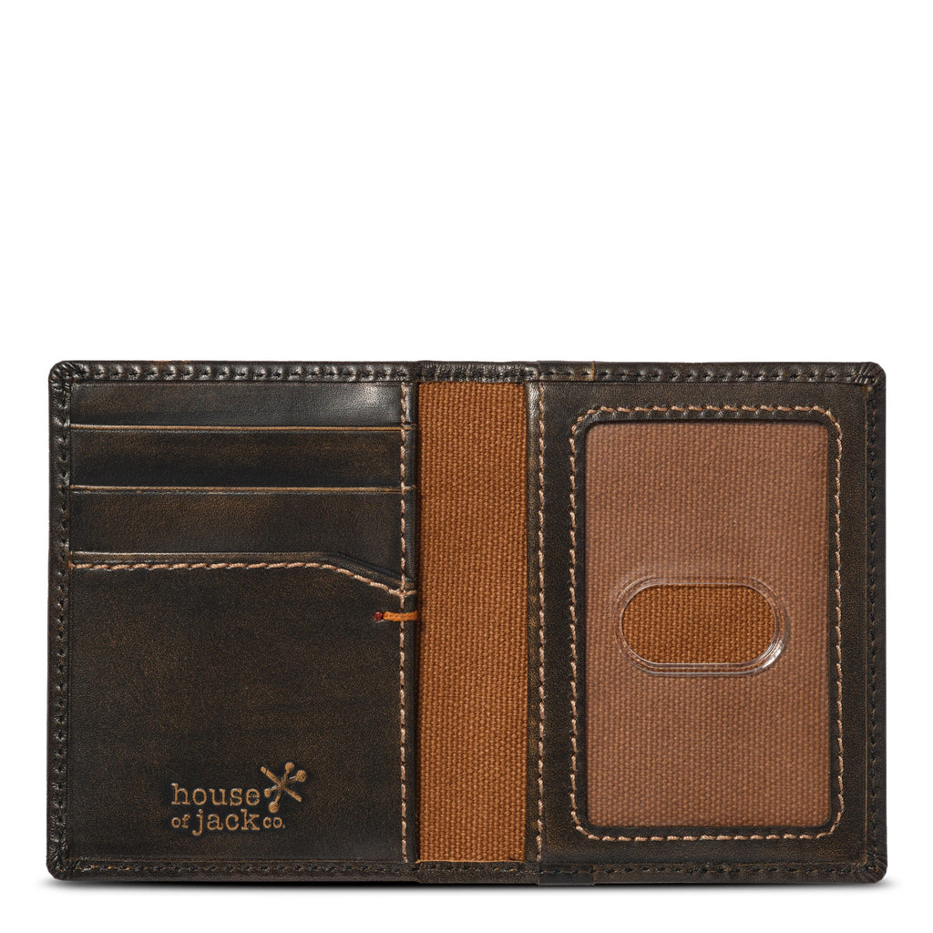 - Features: 2 Exterior Card Slots, 3 Interior Card Slots, 1 Interior Cash/Receipt Pocket, Interior ID Window, Slim Profile